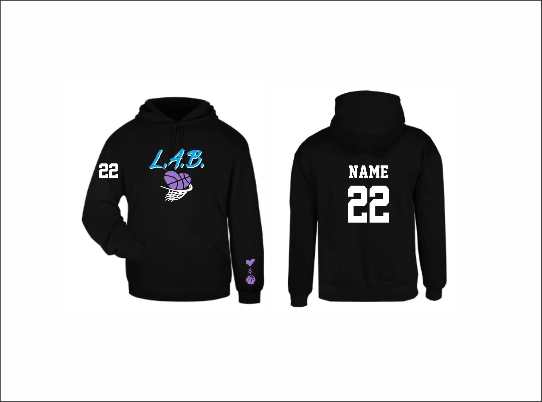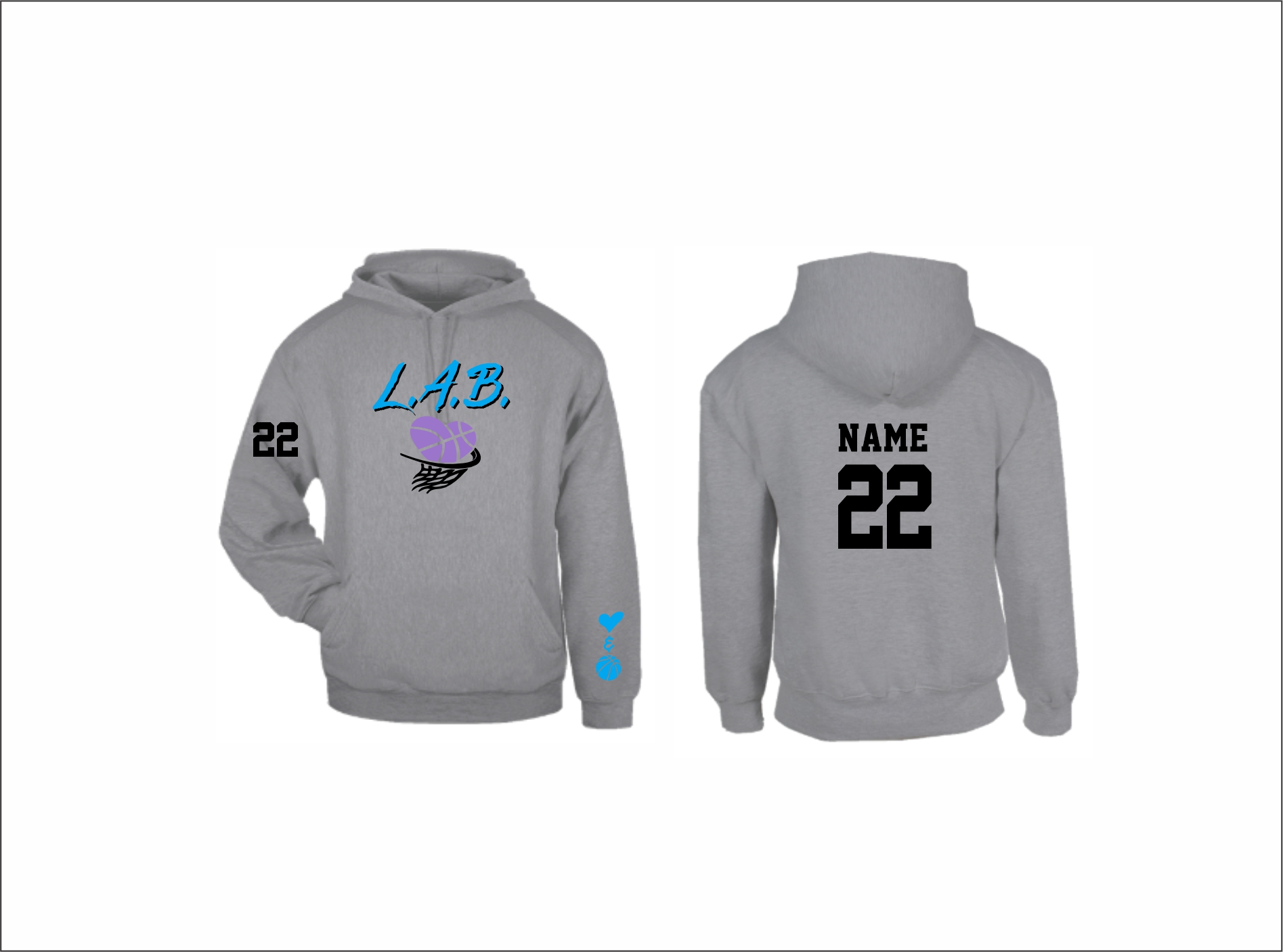 L.A.B. Basketball – Hooded Sweatshirt (Asst. Colors) with logo on front & optional sleeve logo