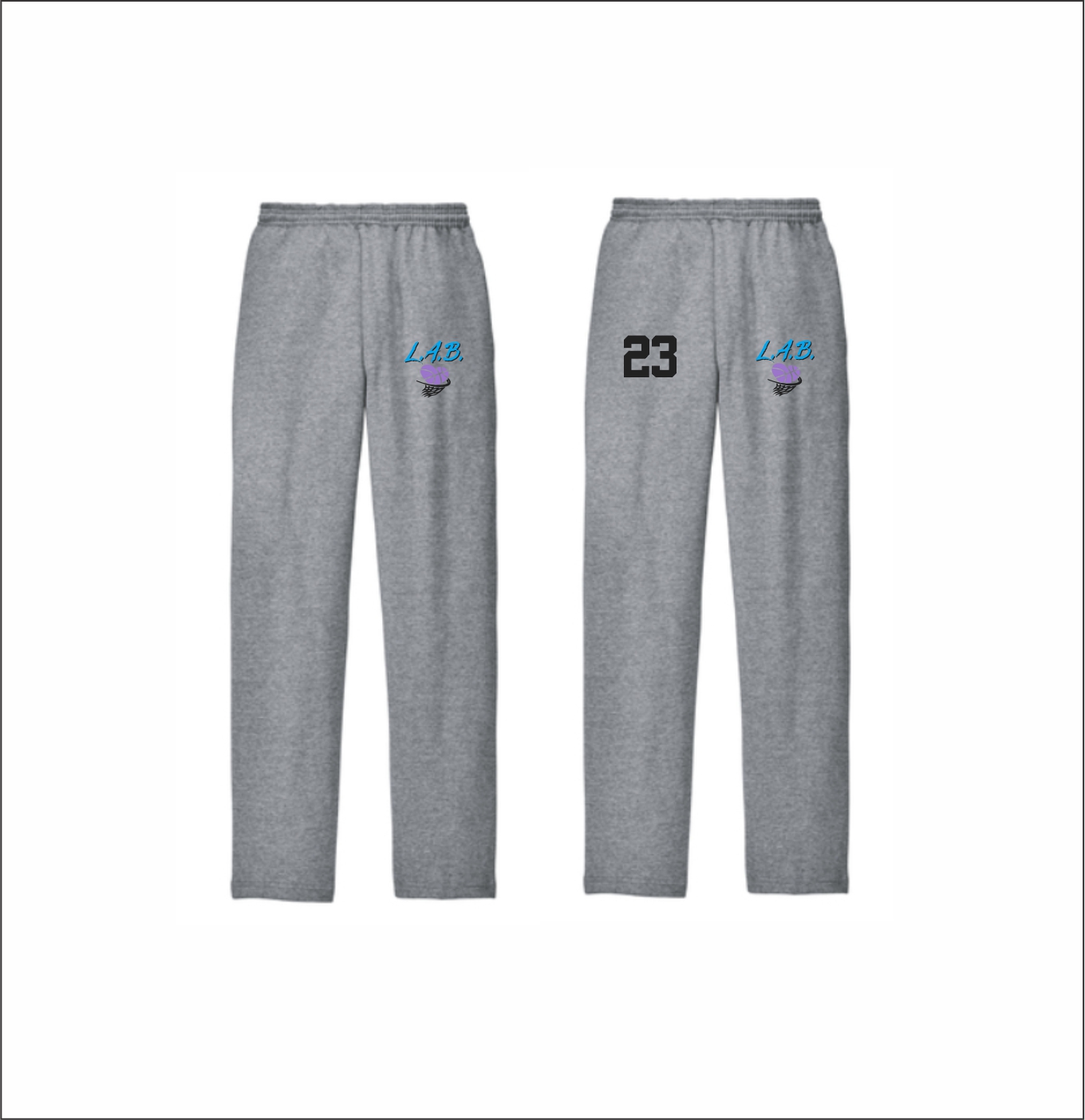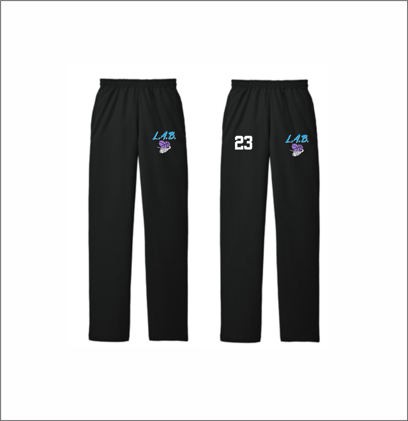 L.A.B. Basketball – Open Bottom Sweatpants (Asst. Colors) with logo left thigh