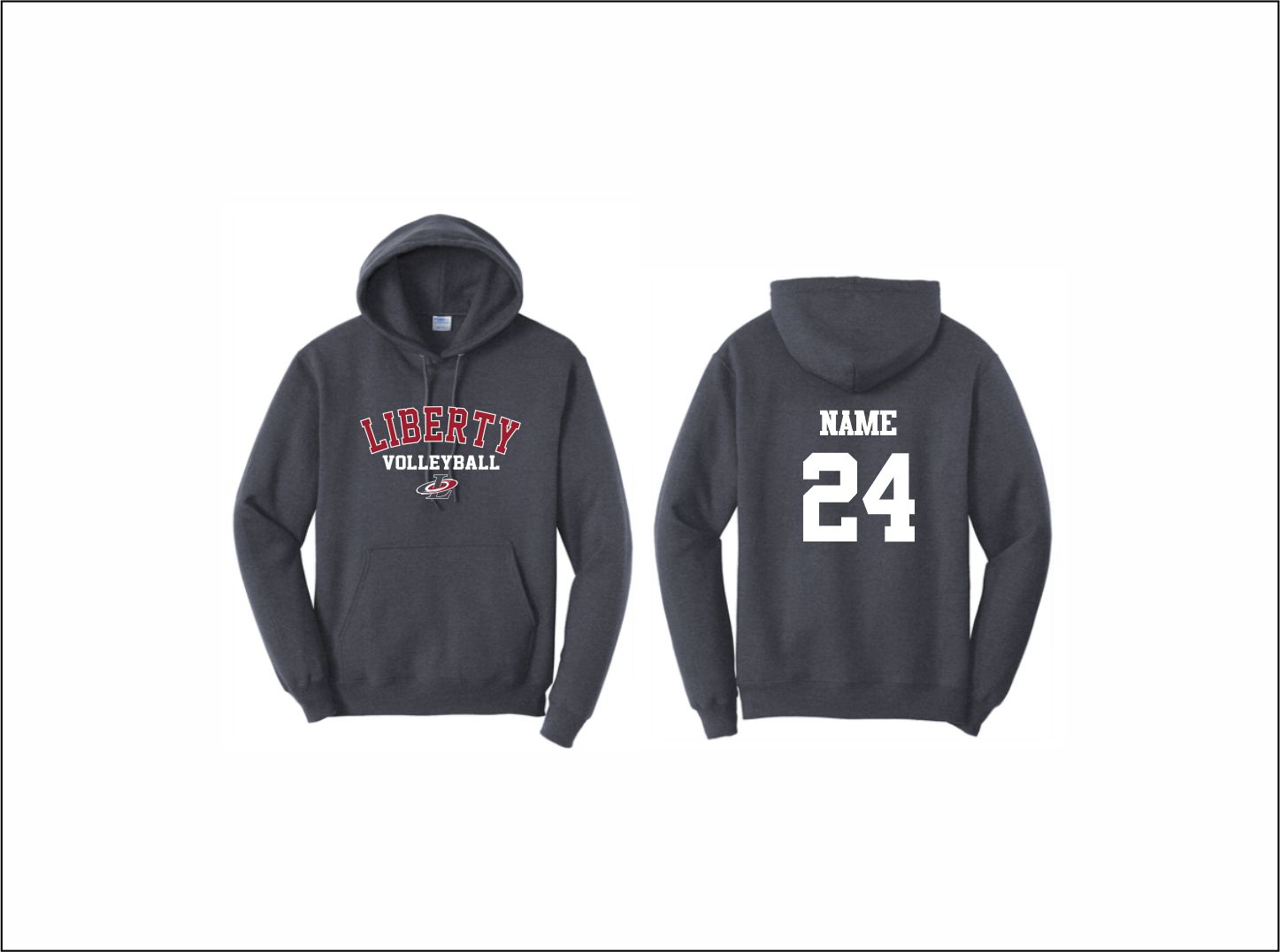 Liberty Volleyball – Hooded Sweatshirt (Navy Heather) with logo on front
