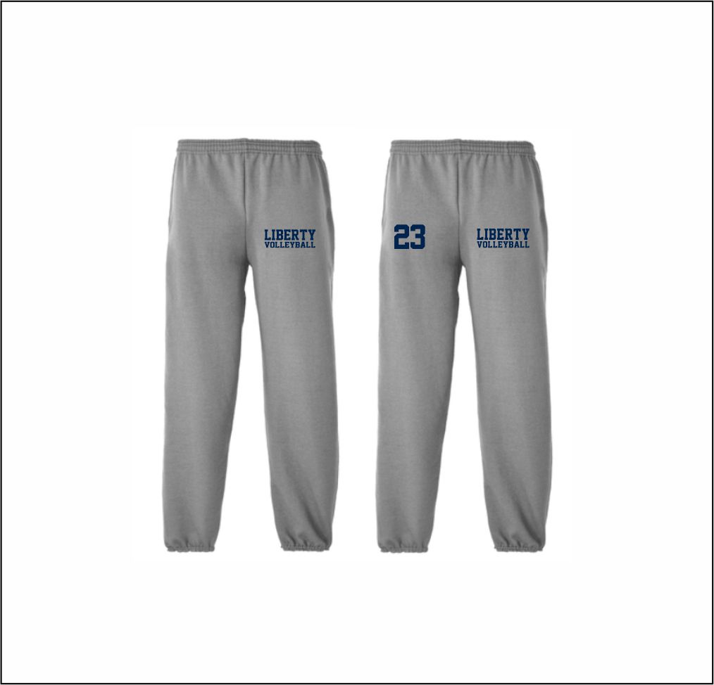 Liberty Volleyball – Gathered Bottom Sweatpants (Gray) with screened logo on front