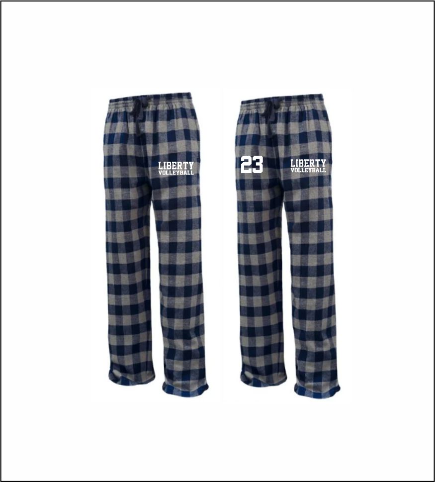 Liberty Volleyball – Buffalo Plaid Flannel Pant (Navy/Gray) with left thigh logo