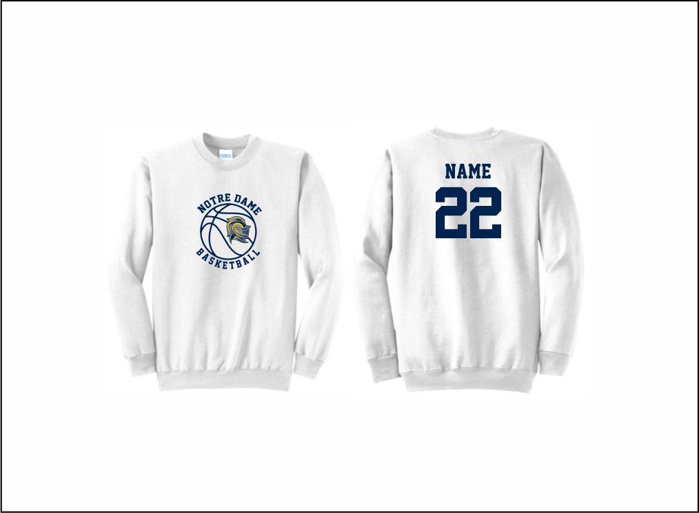 ND Girls Basketball – Crewneck Sweatshirt (White) with logo on front