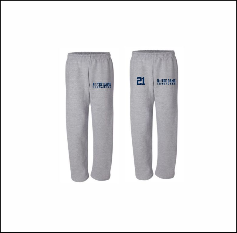 ND Girls Basketball – 32. Open Bottom Sweatpants (Gray)
