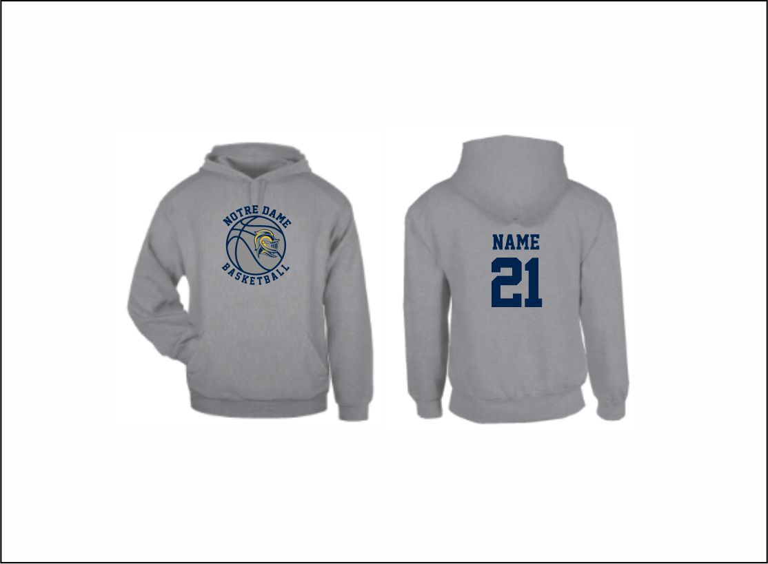 ND Girls Basketball – Hooded Sweatshirt (Gray) with logo on front