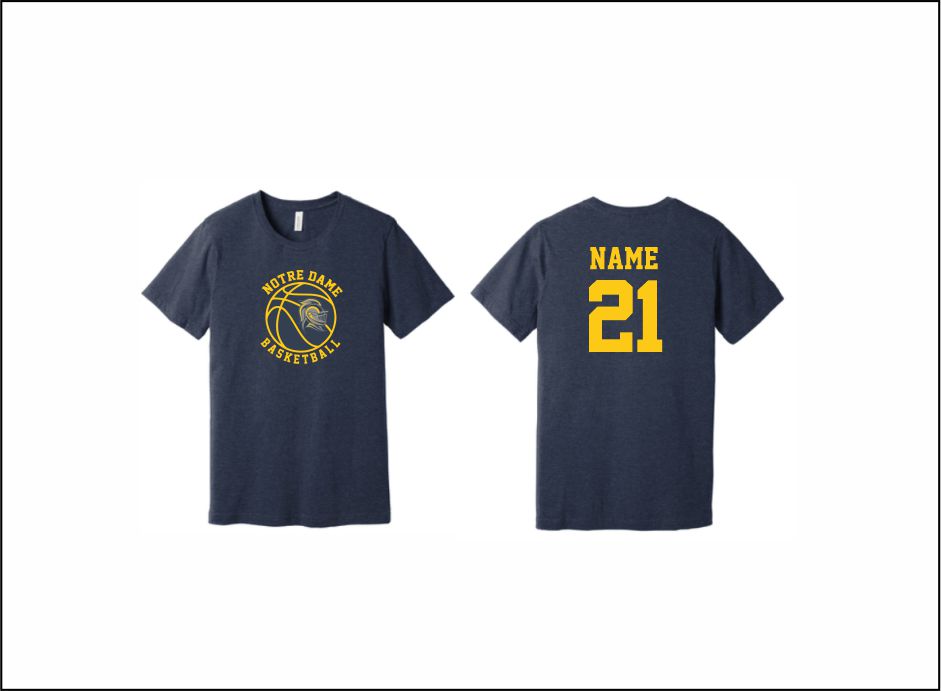 ND Girls Basketball – Short Sleeve Cotton/Poly Soft T-Shirt (Navy Heather) with logo on front