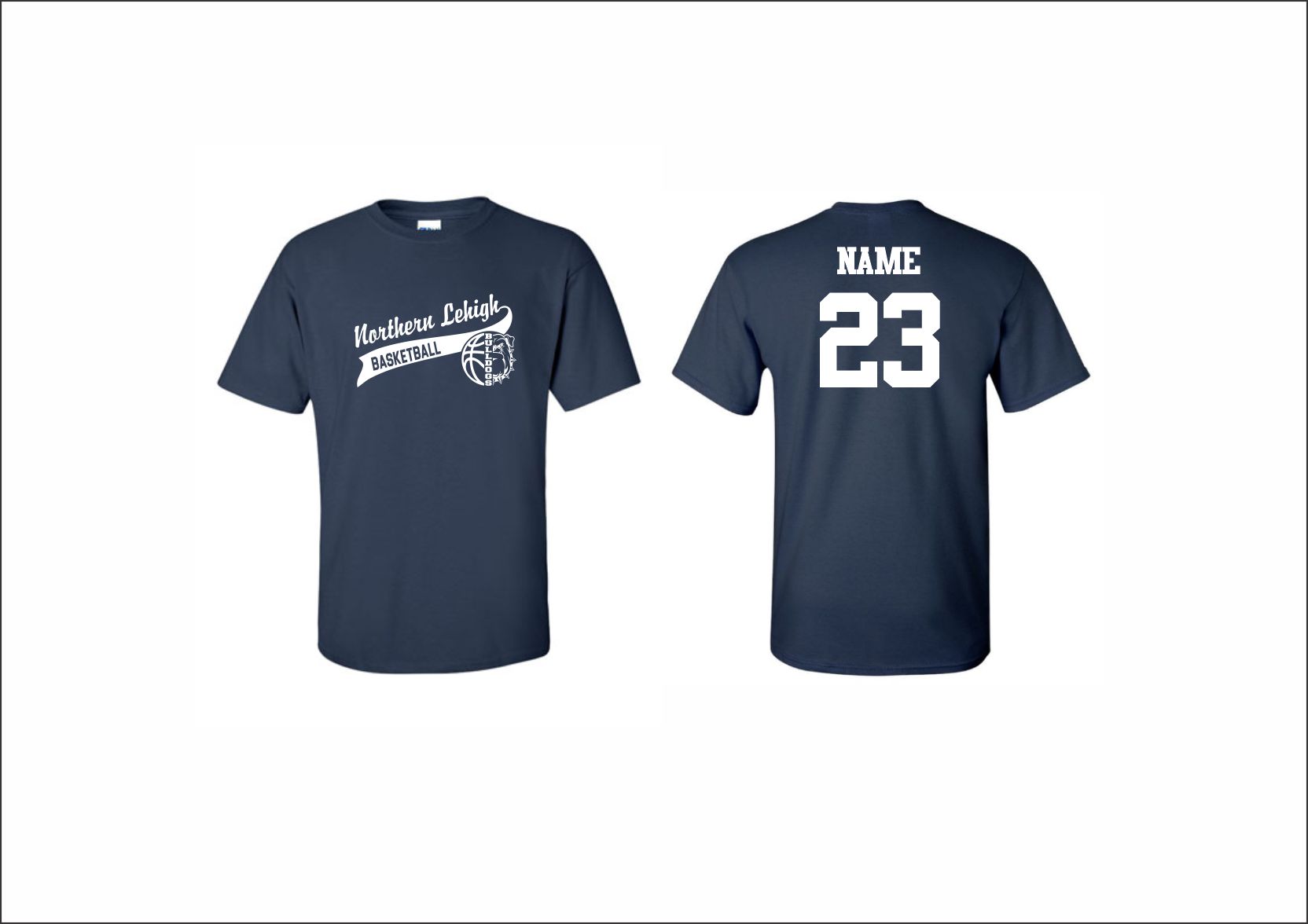 Northern Lehigh Boys Basketball – Short Sleeve Cotton T-Shirt (Navy – logo #1) with logo on front