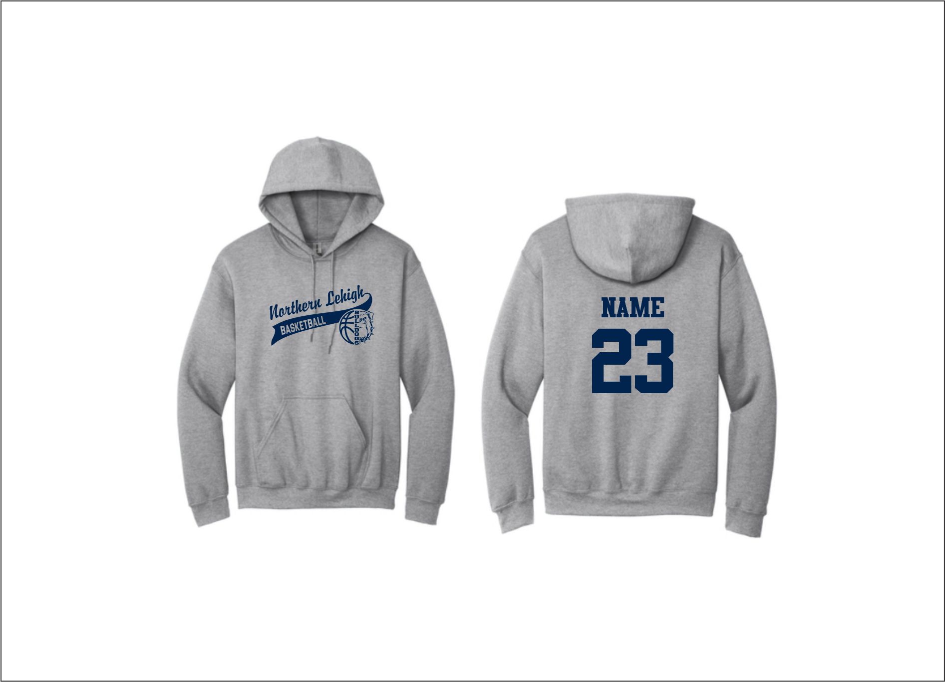 Northern Lehigh Boys Basketball – Hooded Sweatshirt (Gray – logo #1) with logo on front
