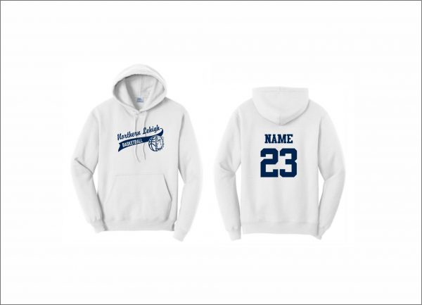 Northern Lehigh Boys Basketball – Hooded Sweatshirt (White – logo #1) with logo on front