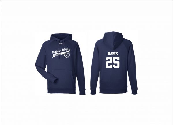 Northern Lehigh Boys Basketball – Under Armour Hooded Sweatshirt (Navy – logo #1) with logo on front