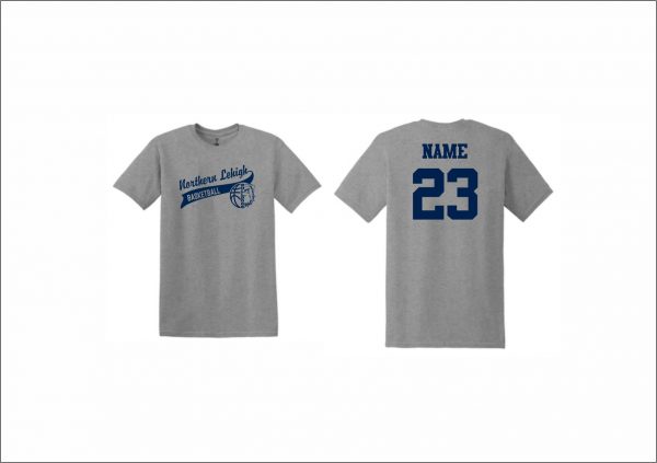Northern Lehigh Boys Basketball – Short Sleeve Cotton T-Shirt (Gray – logo #1) with logo on front