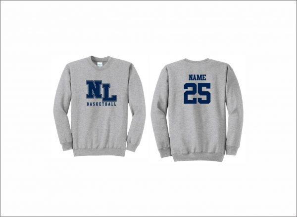 Northern Lehigh Boys Basketball  – Crewneck Sweatshirt (Gray – logo #2) with logo on front