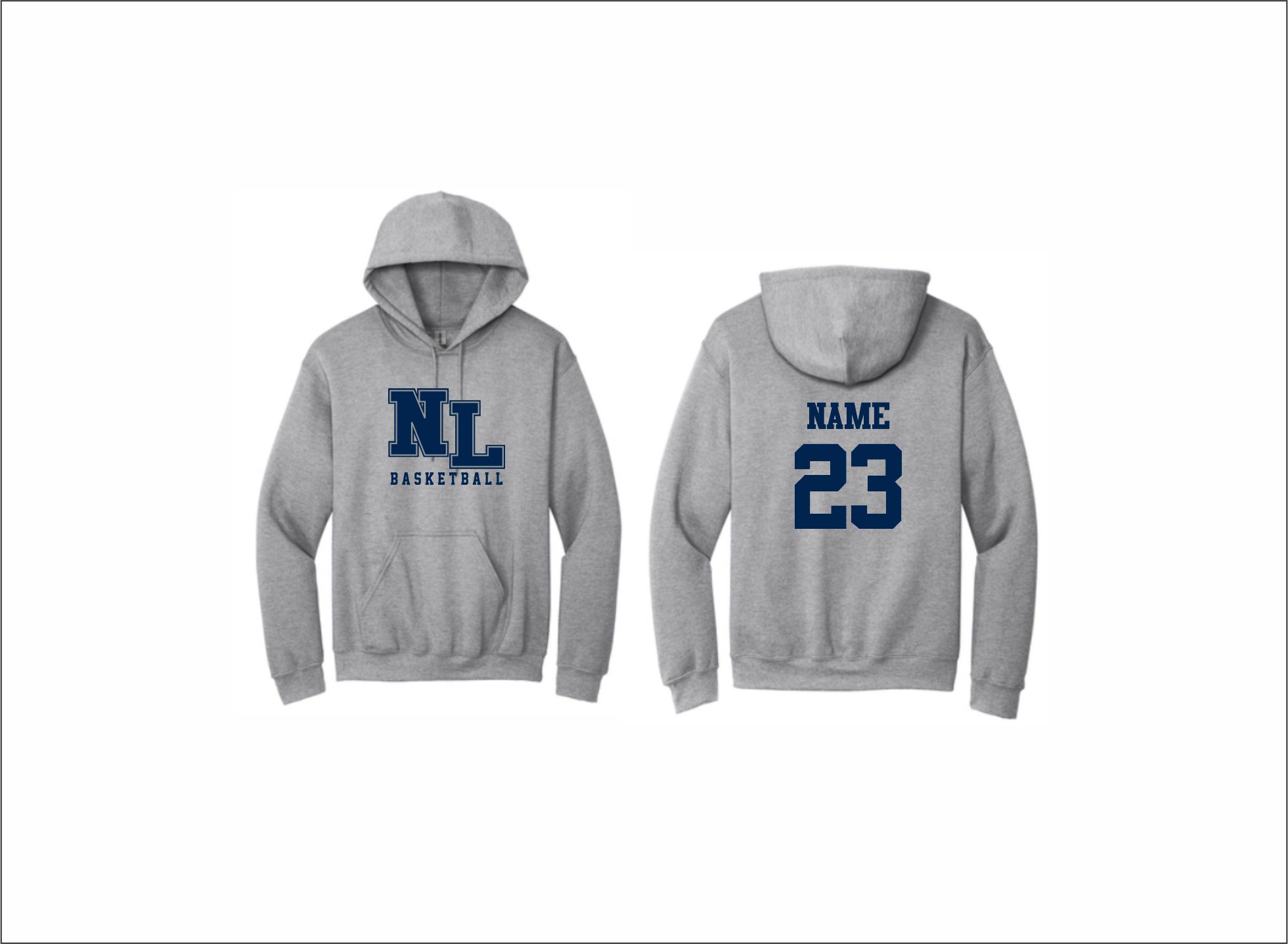 Northern Lehigh Boys Basketball – Hooded Sweatshirt (Gray – logo #2) with logo on front