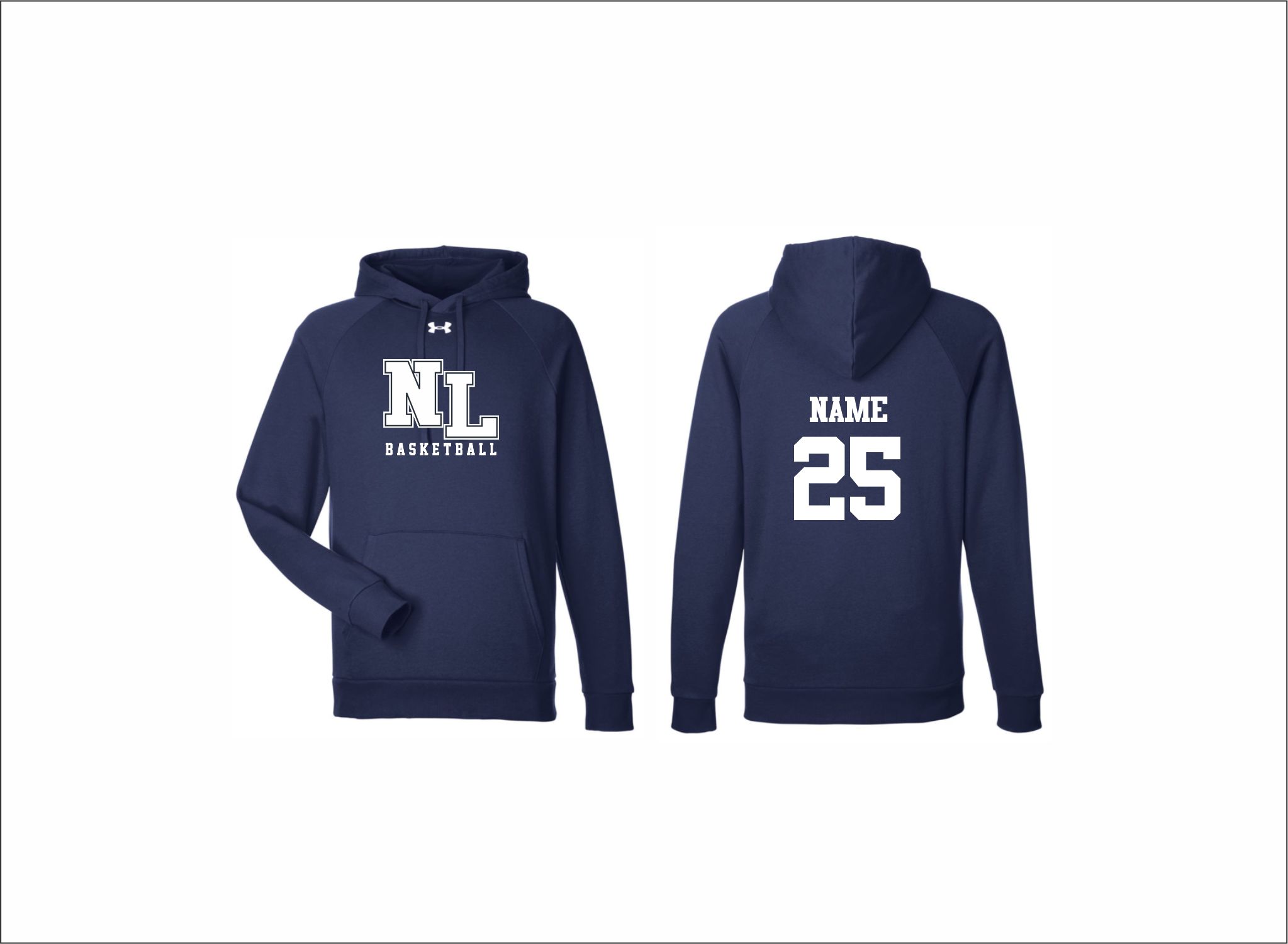 Northern Lehigh Boys Basketball – Under Armour Hooded Sweatshirt (Navy – logo #2) with logo on front