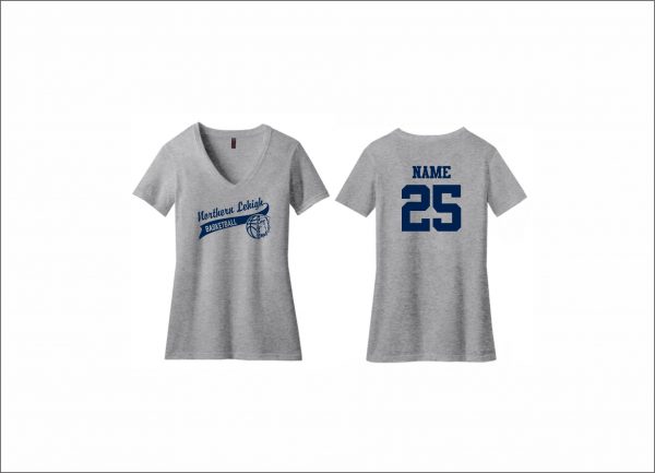 Northern Lehigh Boys Basketball – Ladies Short Sleeve V-Neck (Gray – logo #1) with logo on front