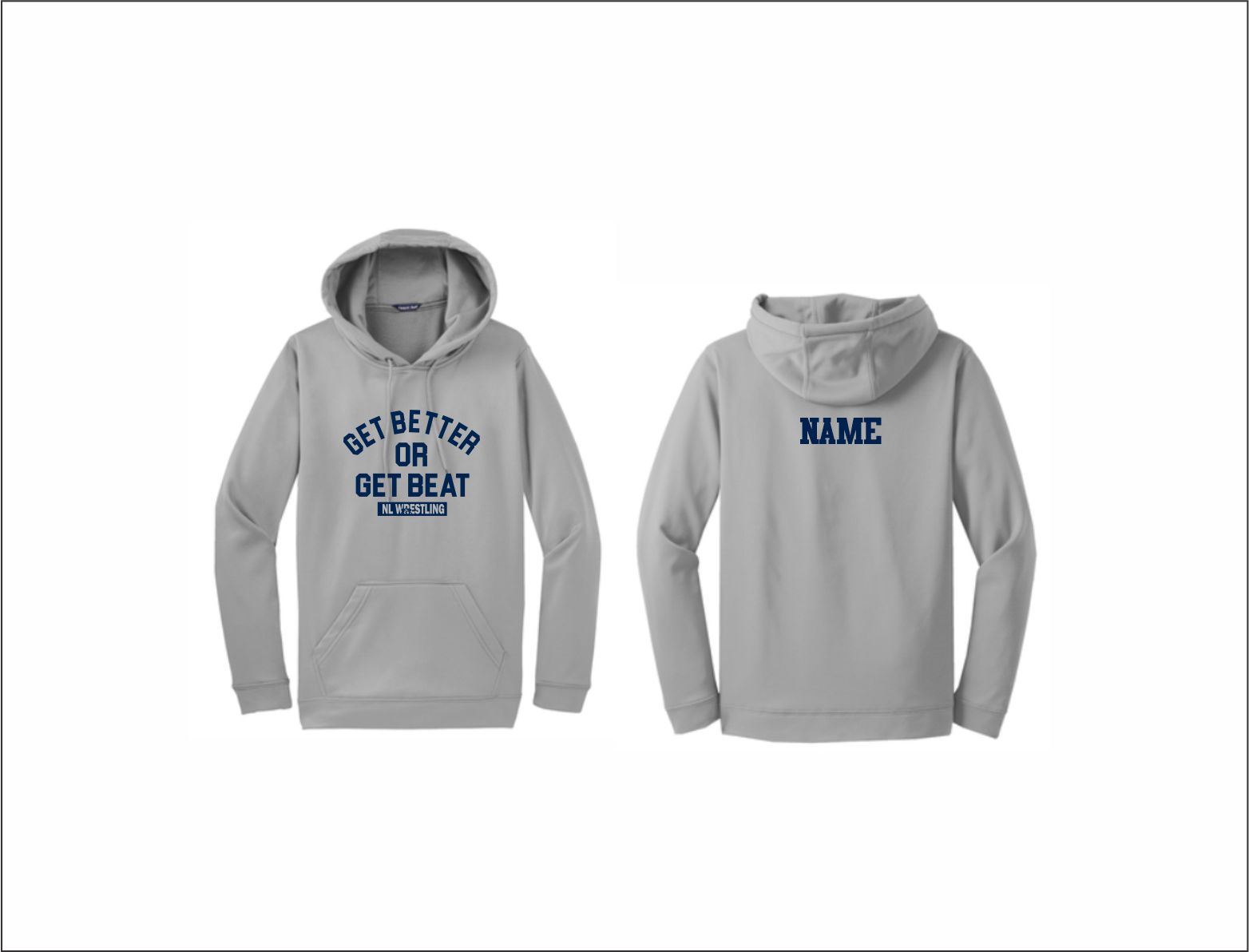 Northern Lehigh Wrestling – Performance Hooded Sweatshirt (Gray – Logo #2) with logo on front