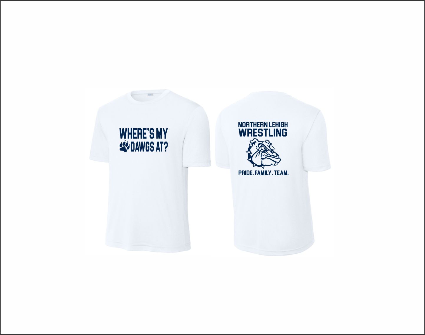 Northern Lehigh Wrestling – Short Sleeve Performance Shirt (White) with logo on front & back