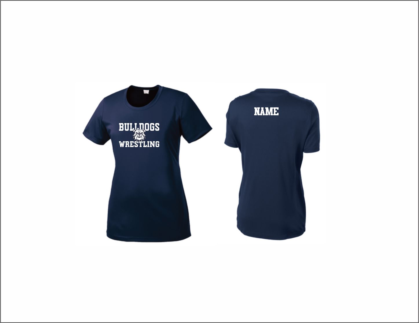 Northern Lehigh Wrestling – Ladies Short Sleeve Performance Shirt (Navy) with logo on front