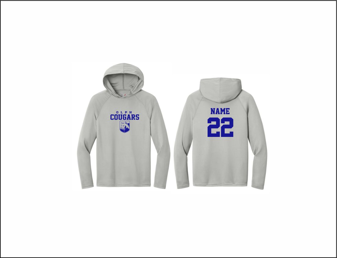 OLPH CYO – Hooded Performance Shirt (Silver) with logo on front
