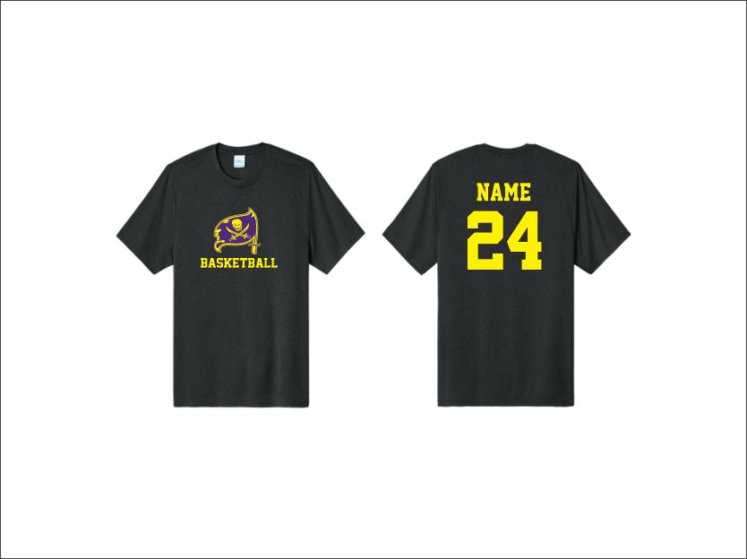 Palisades Basketball – Short Sleeve Performance Shirt (Black Heather) with logo on front