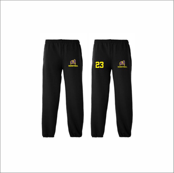 Palisades Basketball – Gathered Bottom Sweatpants (Black) with logo left thigh