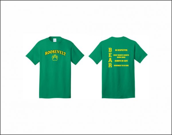 Roosevelt Elementary – Short Sleeve Cotton T-Shirt (Green) with logo on front & back
