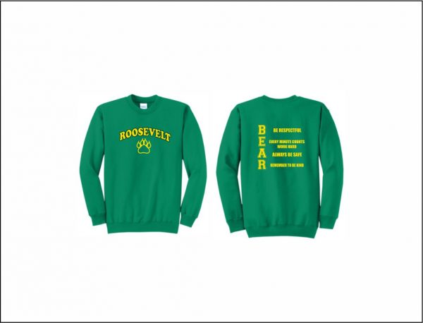 Roosevelt Elementary – Crewneck Sweatshirt (Green) with logo on front & back