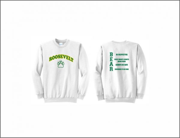 Roosevelt Elementary – Crewneck Sweatshirt (White) with logo on front & back
