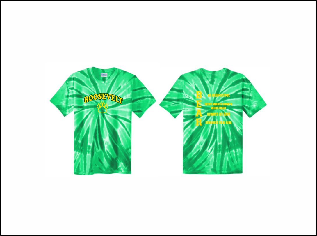 Roosevelt Elementary – Short Sleeve Tie-Dye T-Shirt (Green) with logo on front & back