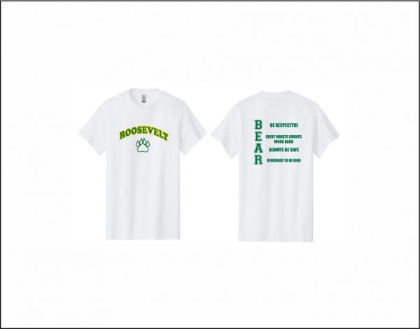 Roosevelt Elementary – Short Sleeve Cotton T-Shirt (White) with logo on front & back