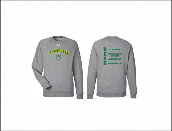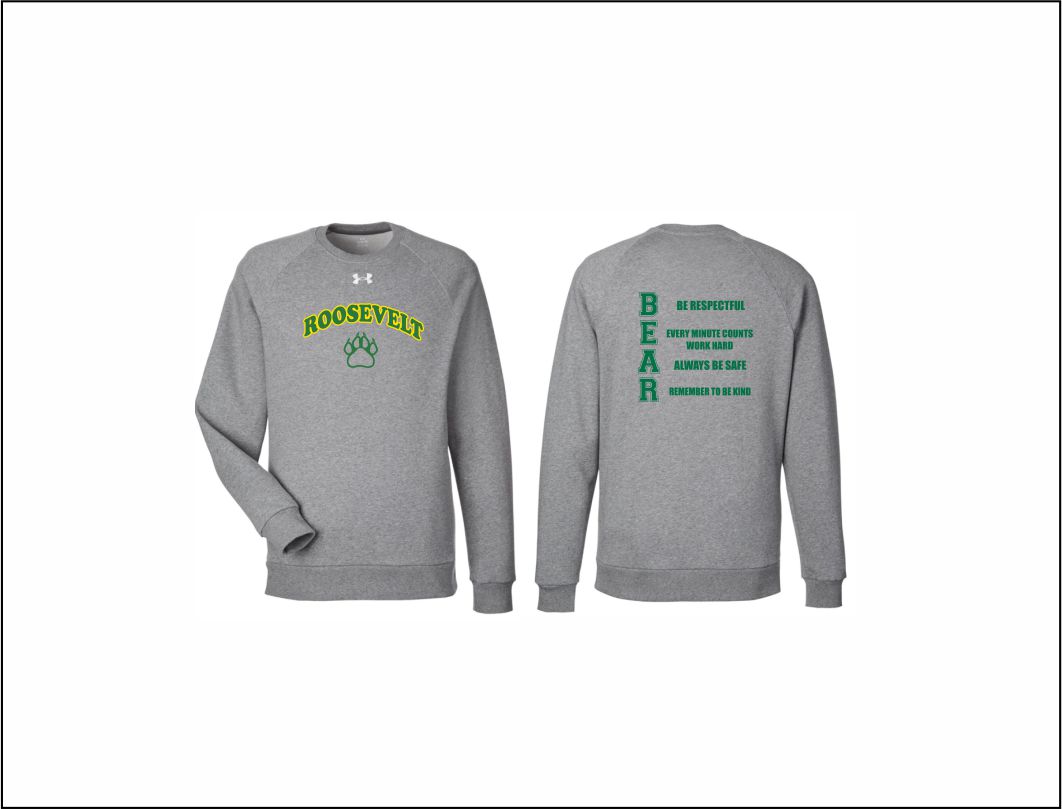 Roosevelt Elementary – UA Rival Fleece Crewneck Sweatshirt (Gray) with logo on front & back