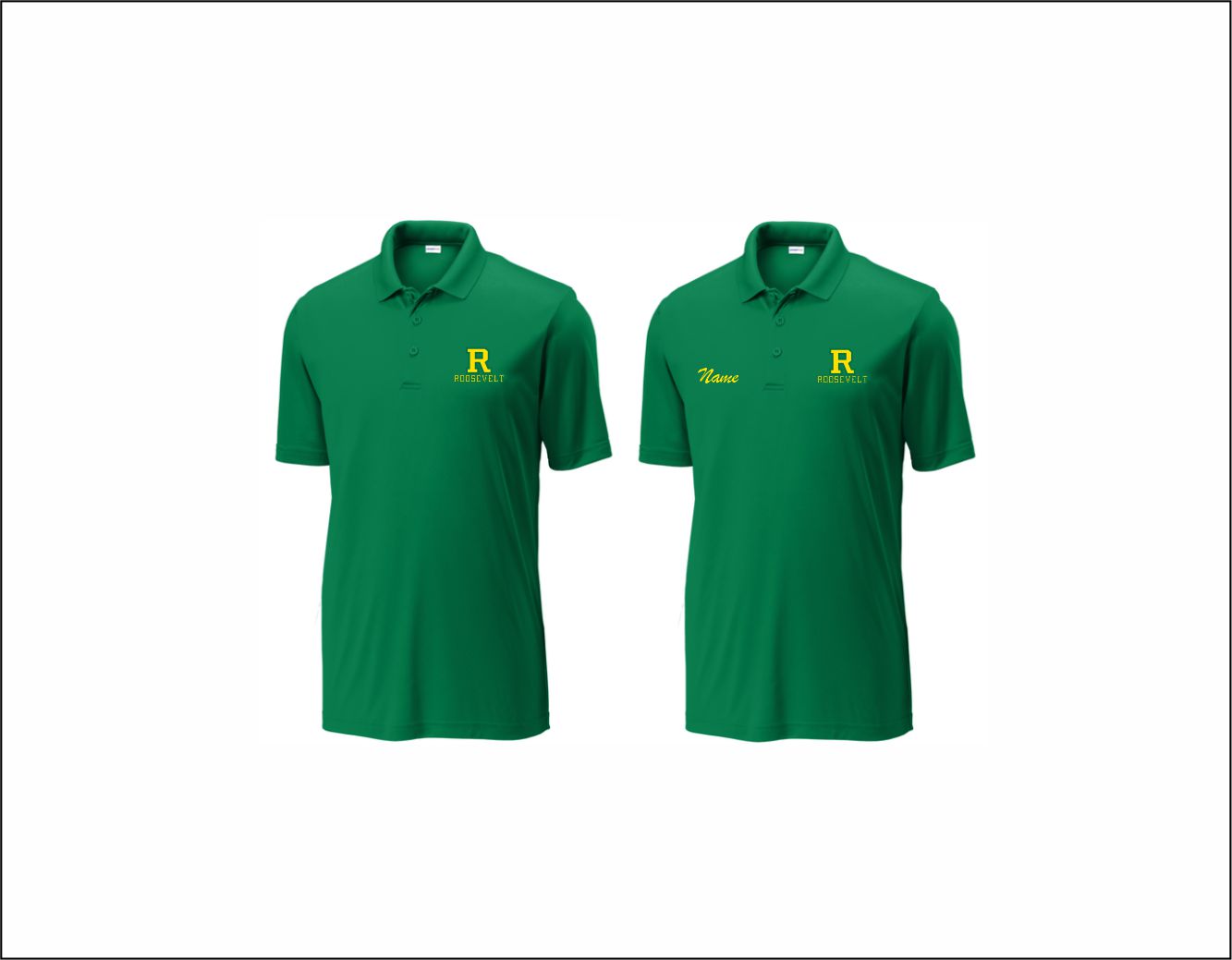 Roosevelt Elementary – Short Sleeve Performance Polo (Green) with embroidered logo left chest