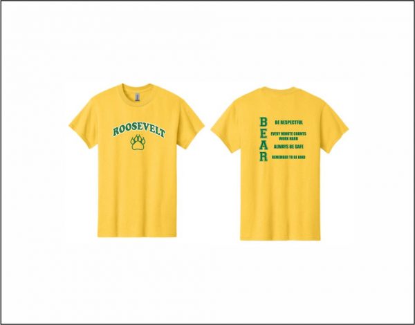 Roosevelt Elementary – Short Sleeve Cotton T-Shirt (Yellow) with logo on front & back