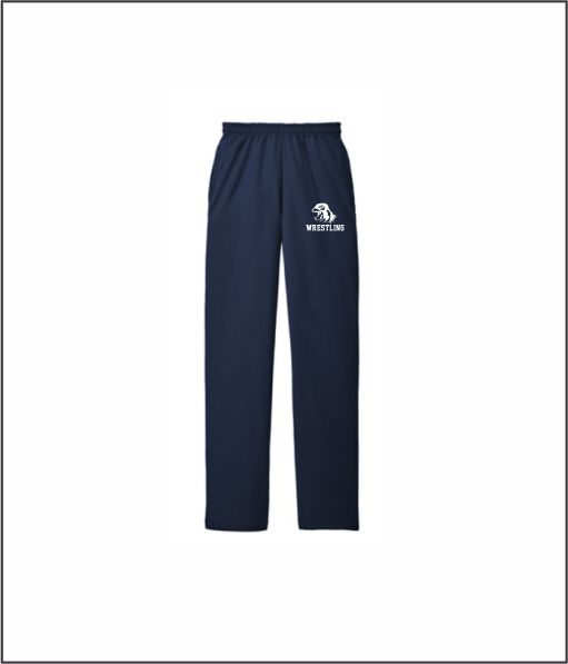 Salisbury Wrestling -Open Bottom Sweatpants (Navy) with screened logo left thigh