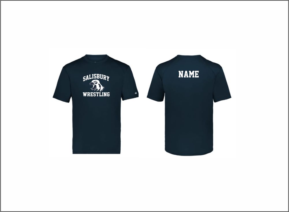 Salisbury Wrestling – Short Sleeve Performance shirt (Navy) with screened logo on front