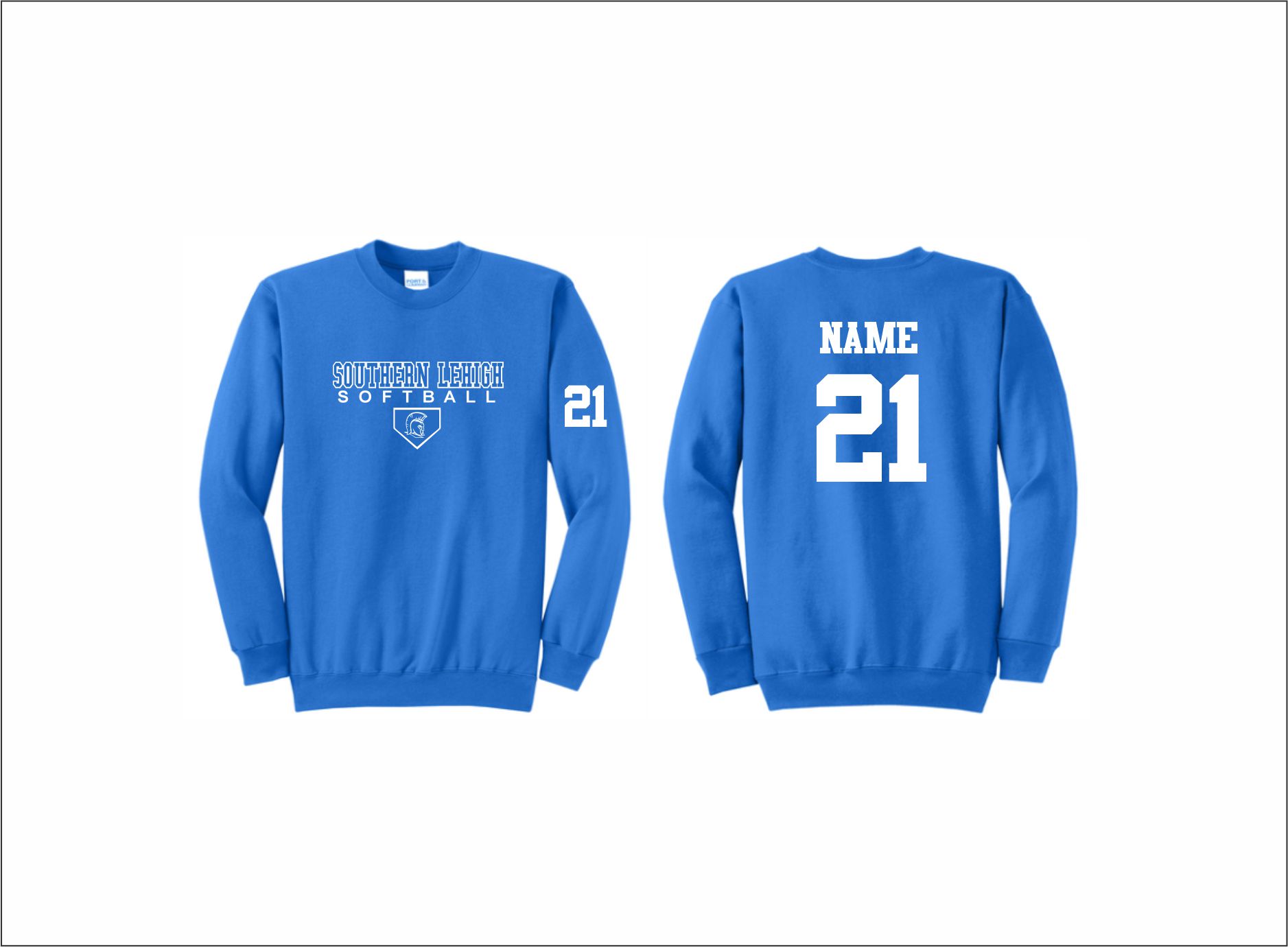 Spartans Softball – Crewneck Sweatshirt (Royal) with screened logo on front
