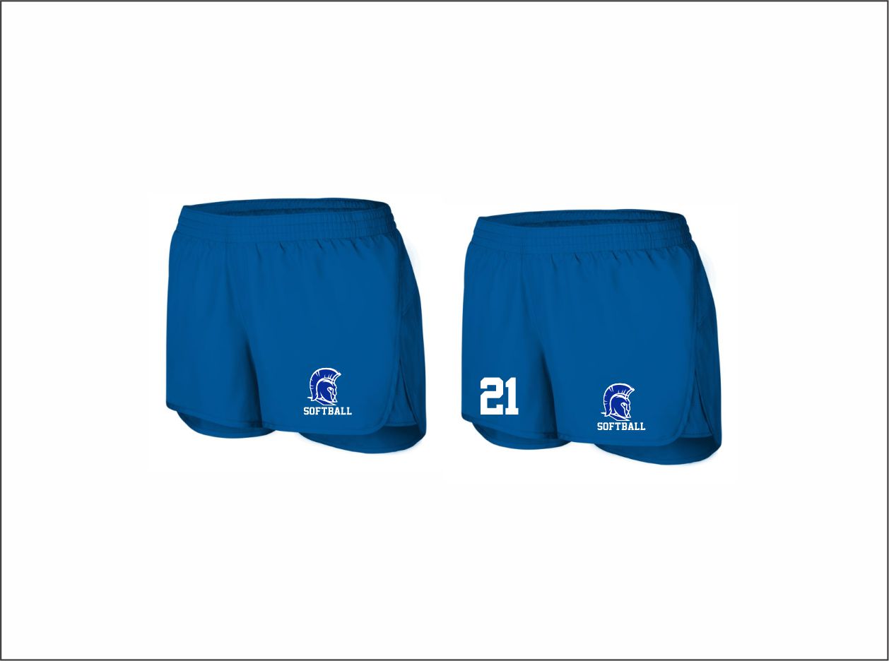 Spartans Softball – Ladies Shorts (Royal) with screened logo left thigh