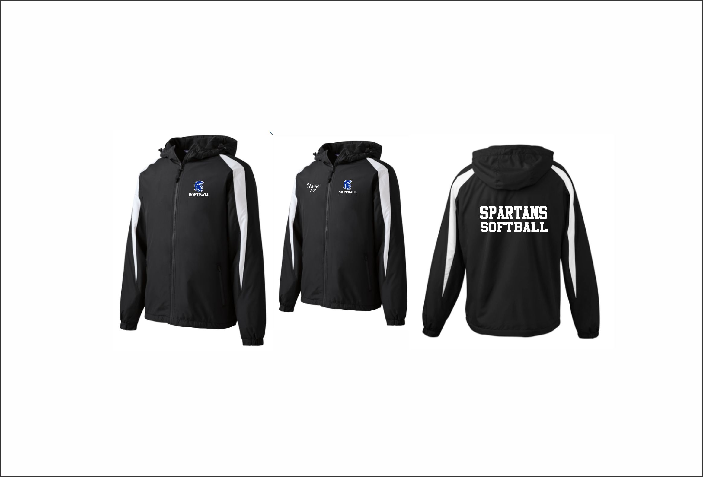 Spartans Softball- Lightweight Full Zip Fleece Lined Colorblock Jacket (Black/White) with embroidered logo left chest and heat applied logo on back