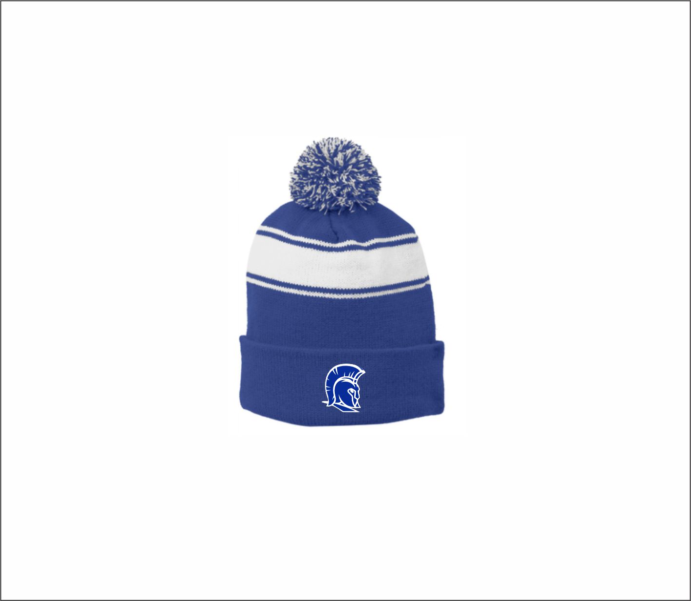 Spartans Softball – Pom Beanie (Royal/White) with logo