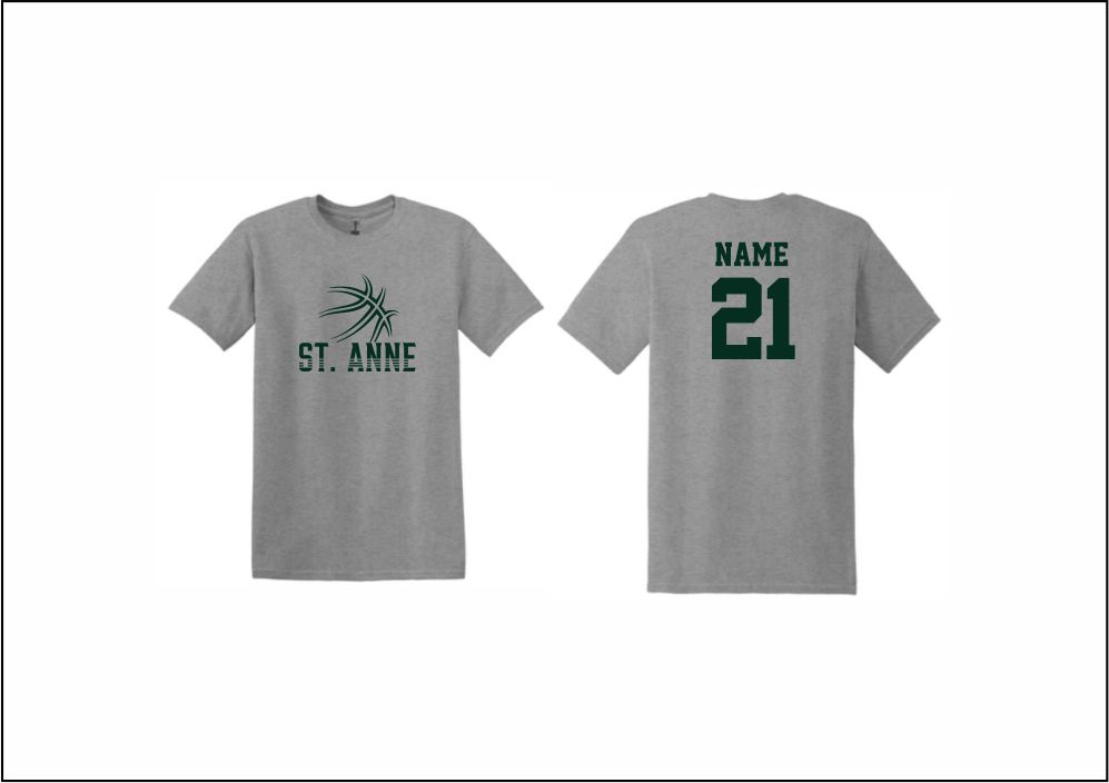 St. Anne Basketball – Short Sleeve Cotton T-Shirt (Gray) with screened logo on front