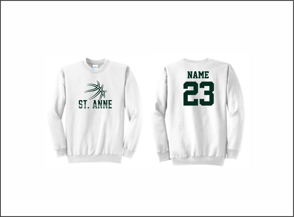 St. Anne Basketball – Crewneck Sweatshirt (White) with screened logo on front