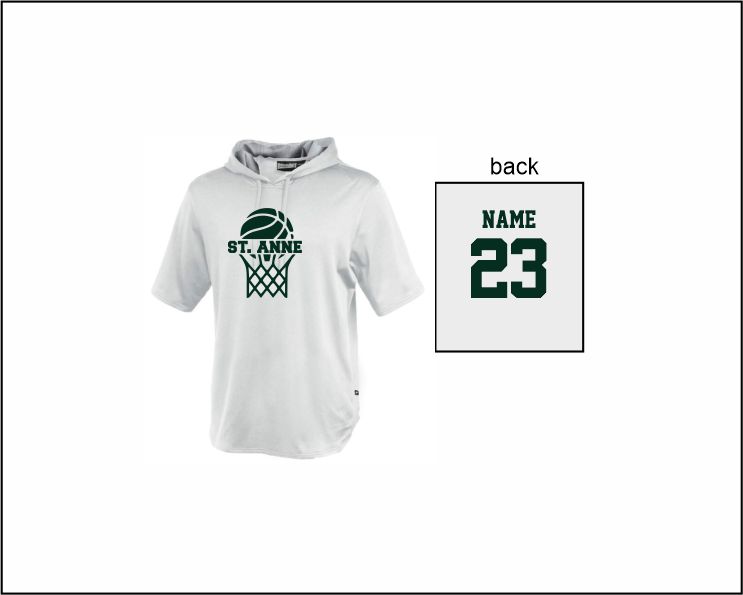 St. Anne Basketball – Hooded Short Sleeve Performance Shirt (White – Logo #2) with screened logo on front