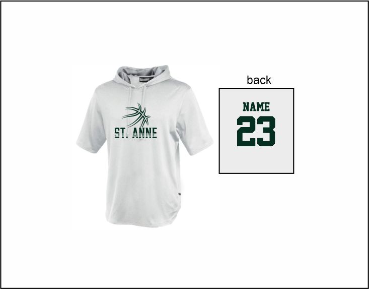 St. Anne Basketball – Hooded Short Sleeve Performance Shirt (White) with screened logo on front