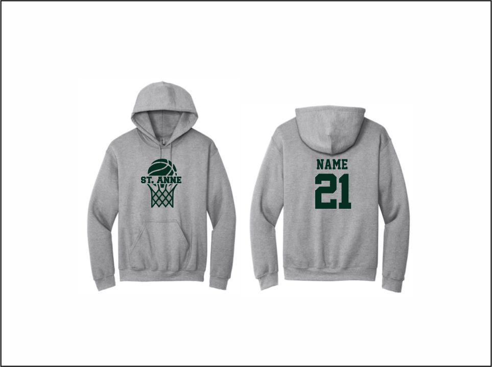 St. Anne Basketball – Hooded Sweatshirt (Gray – Logo #2) with screened logo on front