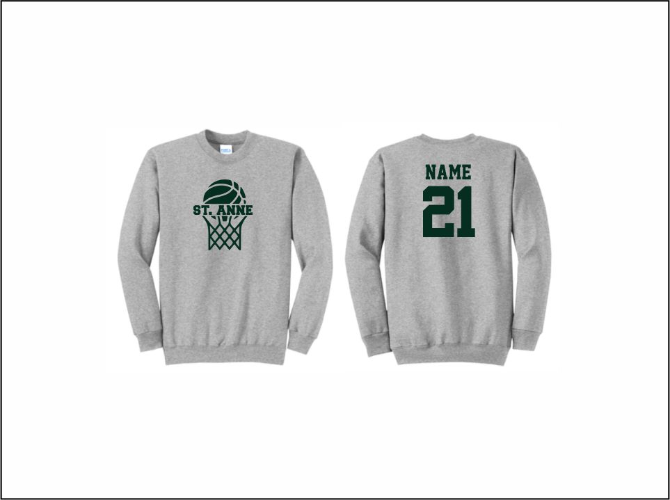 St. Anne Basketball – Crewneck Sweatshirt (Gray – Logo #2) with screened logo on front