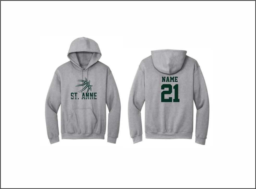 St. Anne Basketball – Hooded Sweatshirt (Gray) with screened logo on front