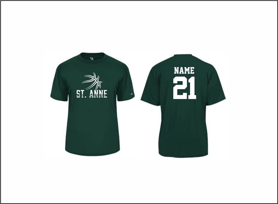 St. Anne Basketball – Short Sleeve Performance Shirt (Forest Green) with screened logo on front