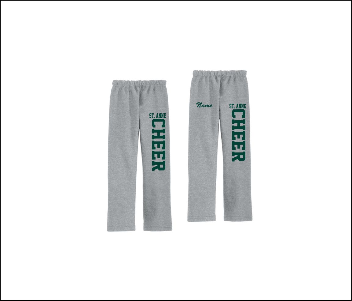 St. Anne Cheer – Open Bottom Sweatpants (Gray) with left thigh logo