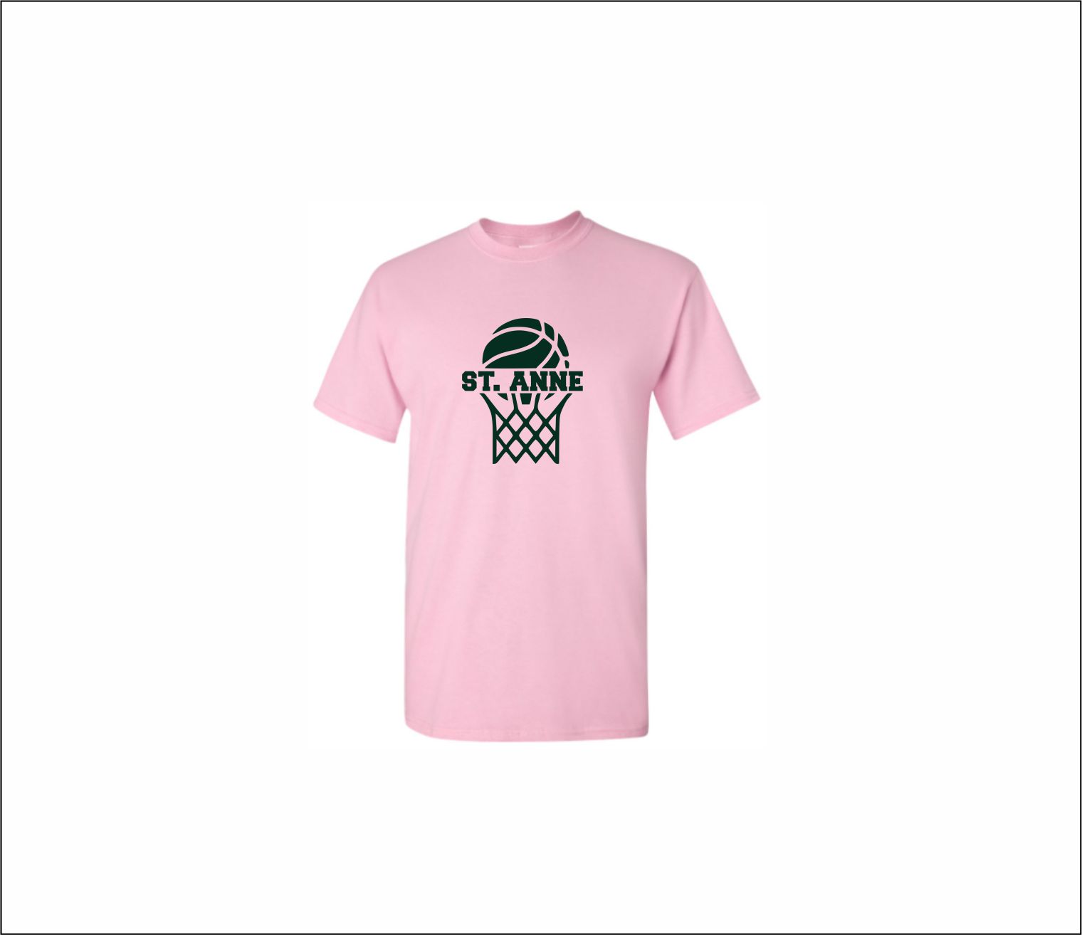 St. Anne Pink Out – Short Sleeve Cotton T-Shirt (Light Pink) with screened logo on front & back