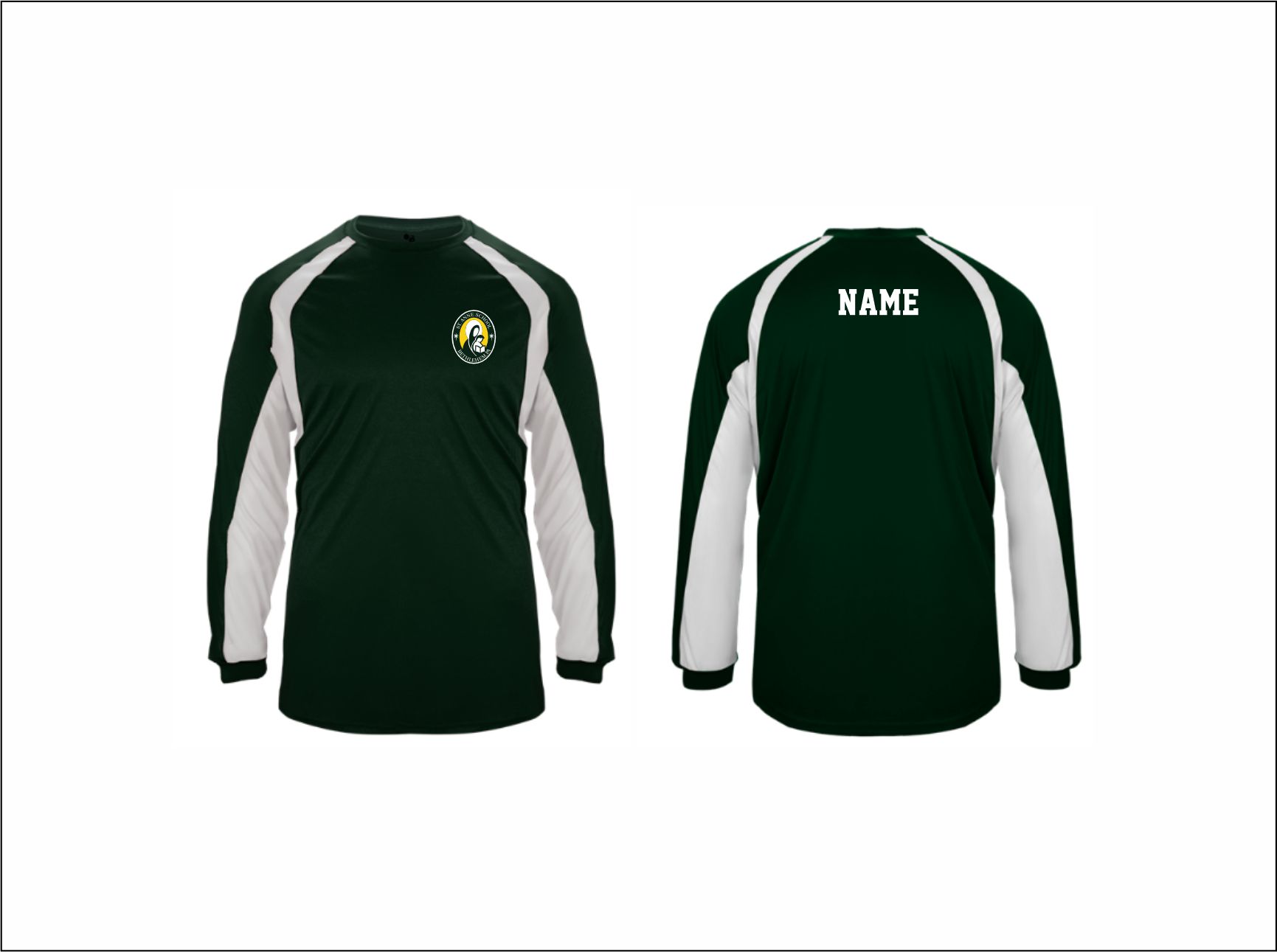 St. Anne School – Long Sleeve Performance Shirt (Forest/White) with logo left chest