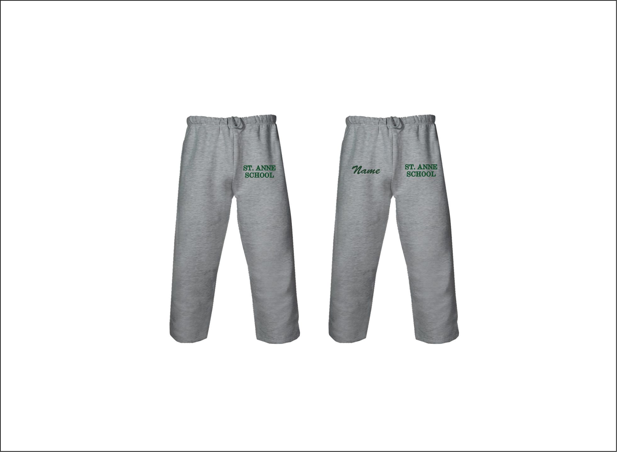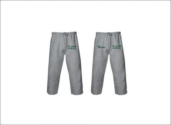 St. Anne School – Open Bottom Sweatpants (Gray) with logo left thigh